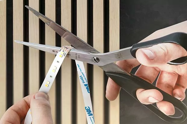 Das Briloner LED-Band kann alle 12,5 cm ganz einfach mit einer Schere an den dafür vorgesehenen Stellen gekürzt werden, was eine maßgeschneiderte Installation ermöglicht.