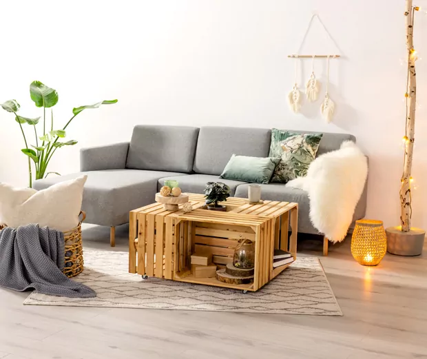 Ein Tisch aus Obstkisten bringt nicht nur Vintage-Flair in dein Zuhause, sondern ist auch echt praktisch, denn die Fächer in den Kisten bieten ordentlich Stauraum. Kleine Rollen machen ihn zudem mobil. Wir zeigen dir in unserer Bauanleitung, wie du den kostengünstigen Tisch ganz einfach selber bauen kannst.