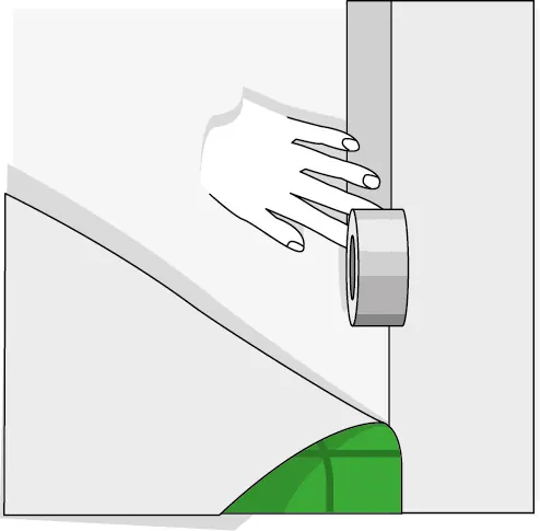 Das Kaltschweißmittel wird durch die feine Nadel tief und gleichmäßig in die Fuge eingeführt und eingepresst. An der Klebebandoberfläche entsteht bei richtiger Anwendung eine etwa 5 mm breite Benetzungskante. Nach etwa 10 Minuten kann das Klebeband entfernt werden. Bitte beachte hier auch die Herstelleranleitung.