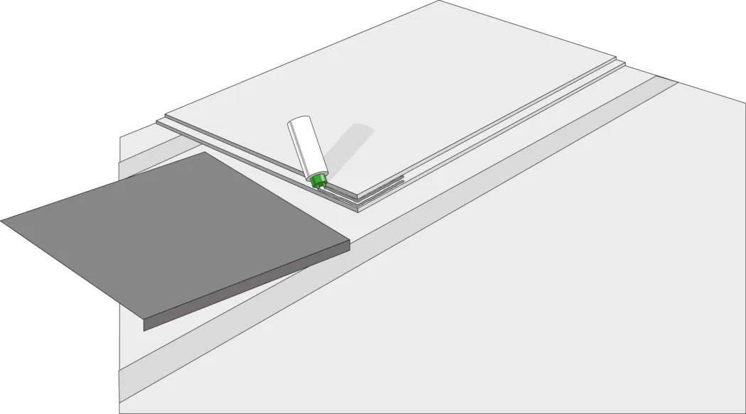 Bevor die nächste Platte angesetzt wird, kommt auf den Falz der liegenden Platte Estrichkleber.