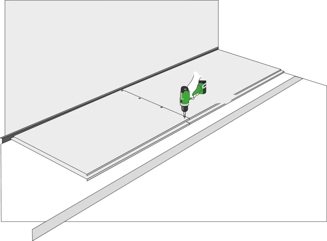 Zusätzlich zum Verkleben werden die Platten mit den vorgeschriebenen Schnellbauschrauben verschraubt. Dies sollte gleich nach dem Verkleben erfolgen.