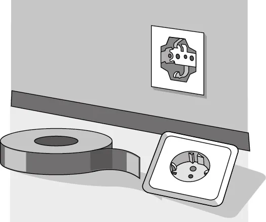 Bei manchen Dingen ist es besser, sie abzuschrauben, wie z. B. die Abdeckungen an Schaltern und Steckdosen. Bitte vorher unbedingt die Stromzufuhr abstellen (Sicherung ausschalten). Klebe die Fußleisten am besten ab, wenn das Entfernen zu aufwendig ist.