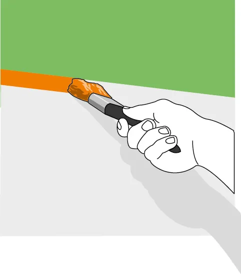 Streiche die umlaufenden Ränder zur Wand mit einem Pinsel vor, dann kannst du mit der Farbwalze zügiger arbeiten. Du kannst auch auf der angrenzenden Wandfläche mit einem guten Abdeckband abkleben. Spare hier nicht an der Qualität, sonst läuft die Farbe unter das Band. Wenn die angrenzende Wandfläche auch gestrichen wird, kannst du dir das Abkleben an der Wand sparen.