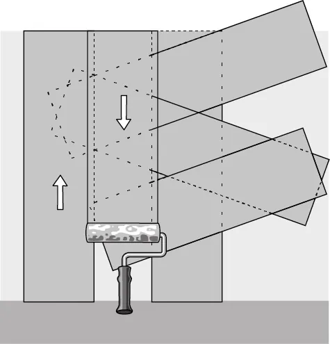 Auch die Wandflächen werden in kleineren Flächeneinheiten bearbeitet. Am besten geht man von der größten Lichtquelle (Fenster) aus und arbeitet sich dann streifenweise vor.