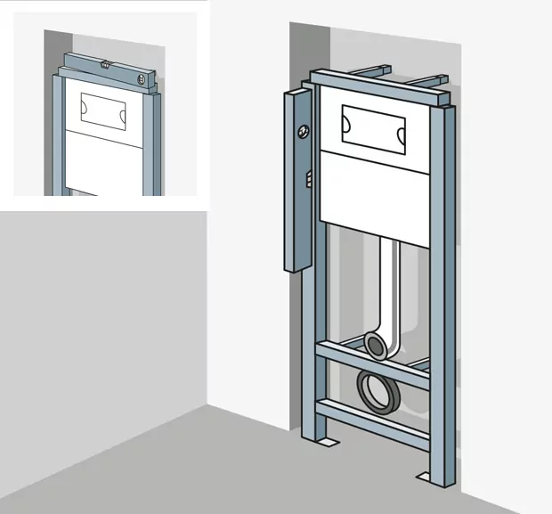 1. Das Montageelement für das wandhängende WC wird an der vorgesehenen Stelle aufgestellt. Je nach Einbausituation wird dieses in einer Nische „versteckt“ oder vor der Wand aufgebaut.