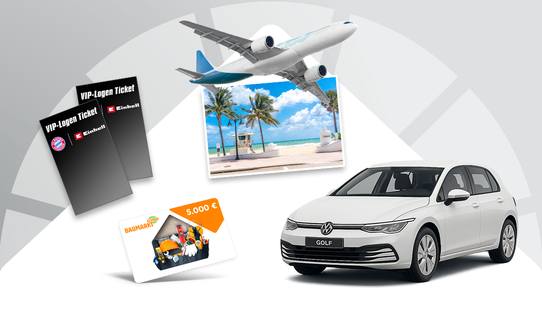- Einen Einkaufsgutschein für Globus Baumarkt in Höhe von 5.000,- €