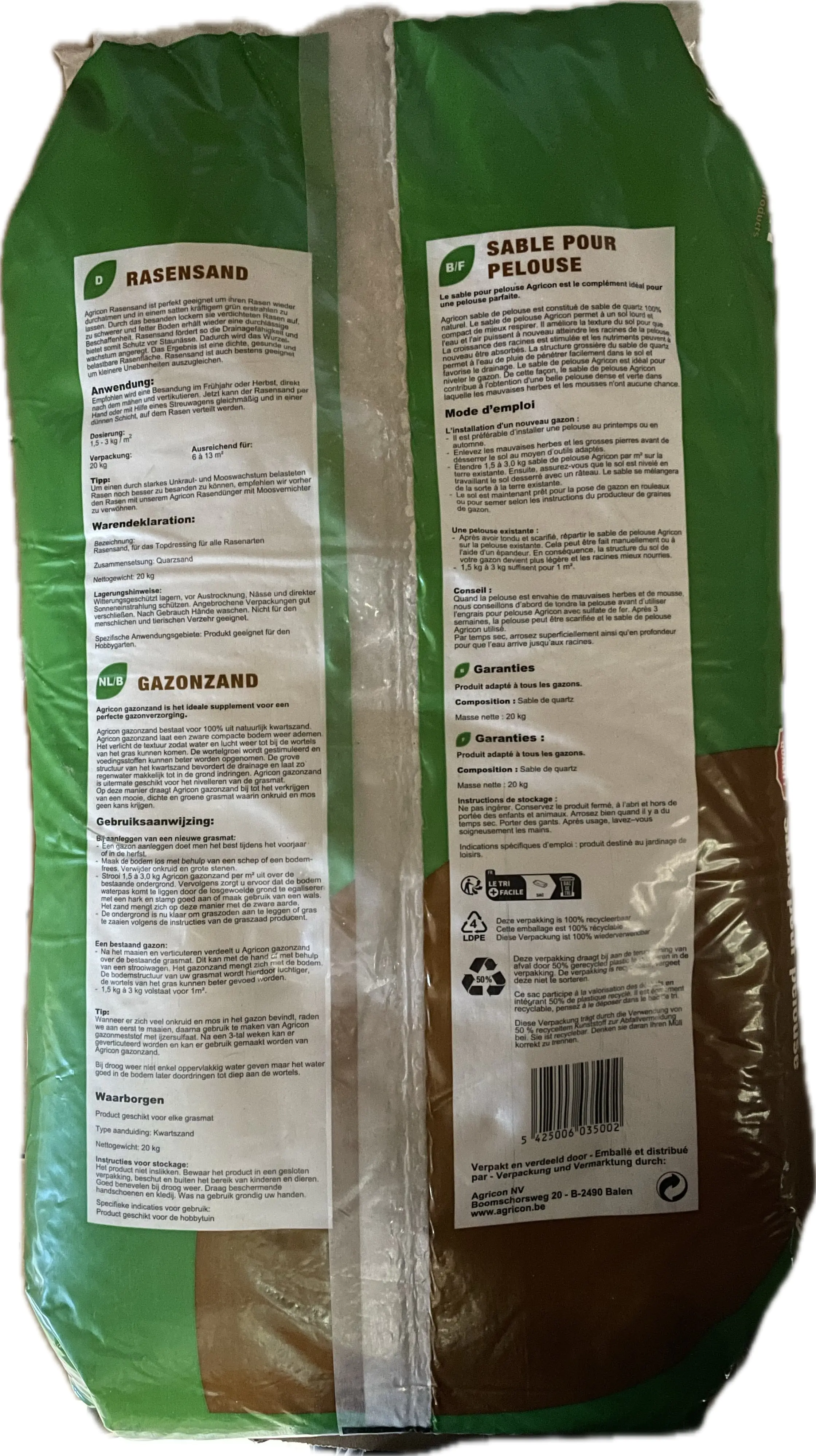Profis im Fußball- & Golfbereich wissen es schon lange: Rasensand ist perfekt geeignet um ihren Rasen wieder durchatmen und in einem satten kräftigem grün erstrahlen zu lassen. Durch das Besanden lockern sie verdichteten Boden auf, verbessern die Drainage und versorgen die Wurzeln mit Sauerstoff. Auch das Thema der Staunässe gehört damit der Vergangenheit an. Das Ergebnis ist eine dichte, gesunde und belastbare Rasenfläche. Er eignet sich auch bestens, um kleinere Unebenheiten auszugleichen. Die Verteilung erfolgt leicht per Hand oder mit Hilfe eines Streuwagens.