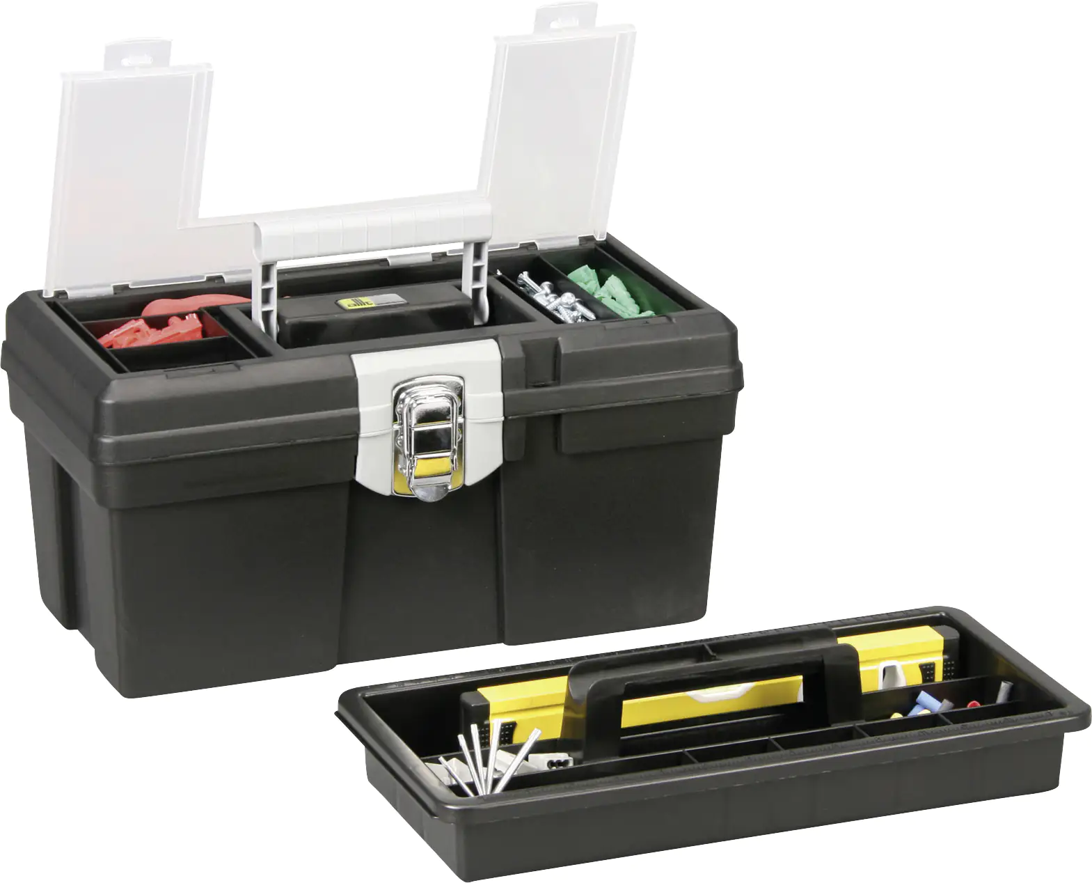 - Fester Sortimentskasten für Kleinteile im Deckel integriert