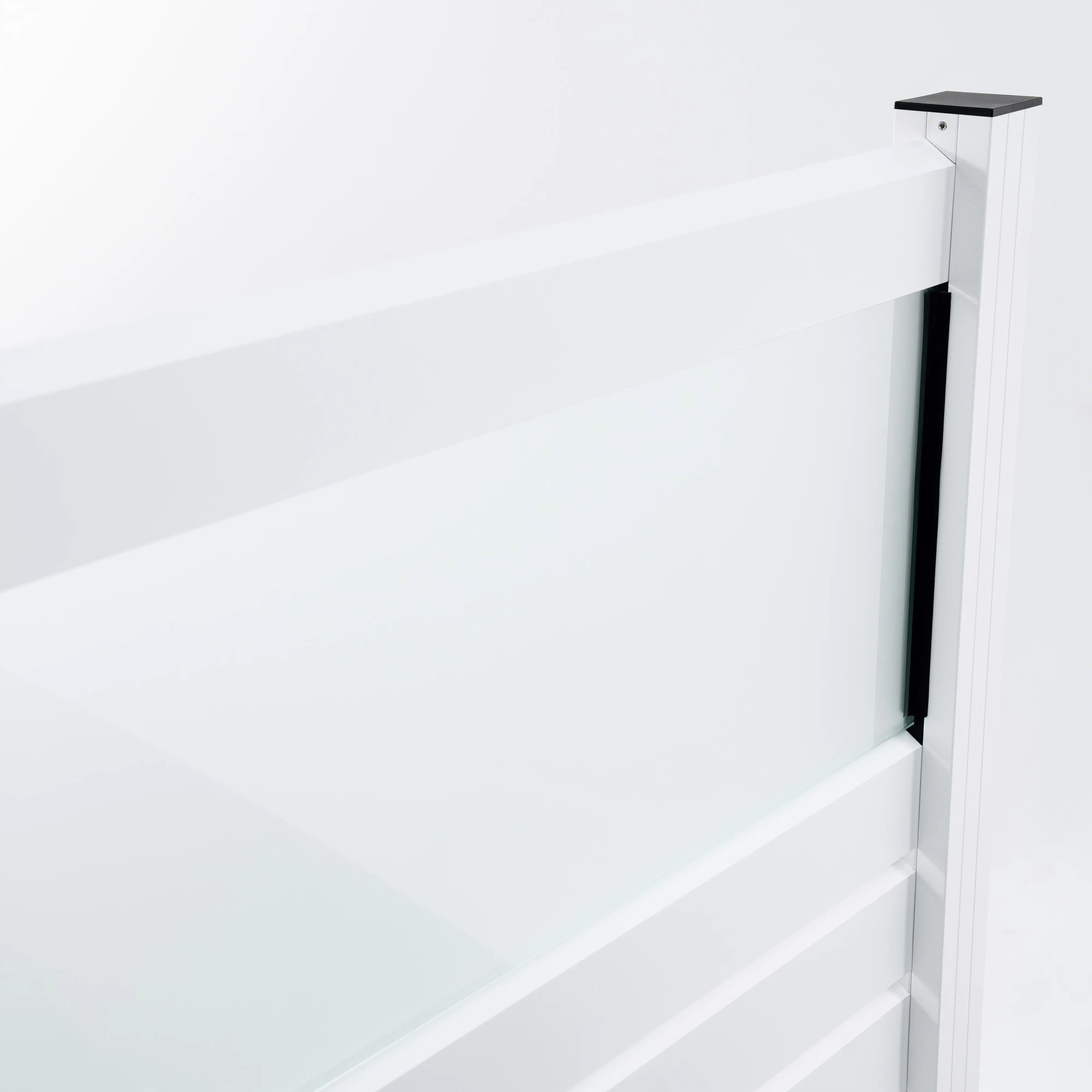 - Lieferumfang: 2x Aluminiumpfosten, 2x Pfostenanker zum Anschrauben oder Einbetonieren, 2x Abdeckkappen für Pfostenanker, 1x Glasstreifen satiniert 312 mm hoch, Rhombusprofile und Montagezubehör