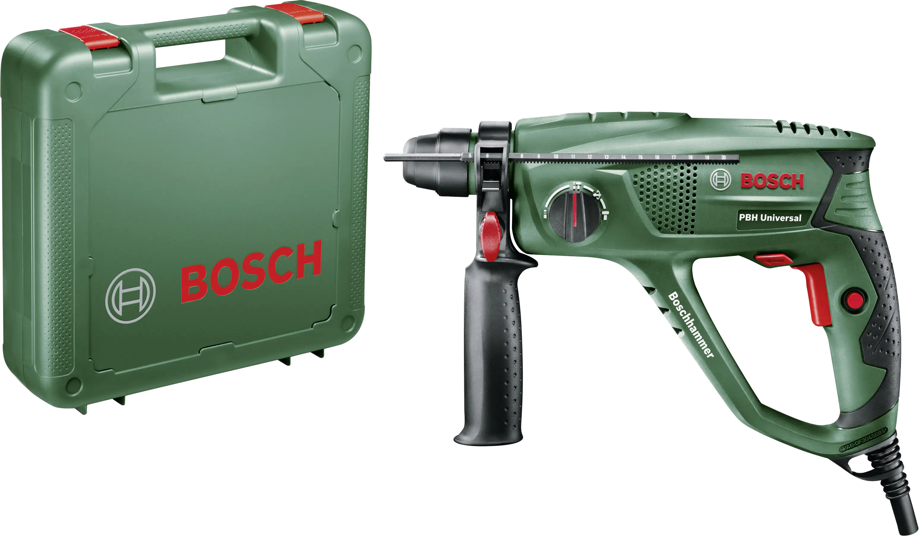 Der Bohrhammer PBH 2100 RE ist ideal zum mühelosen Bohren, Hämmern und Meißeln in Beton, Mauerwerk, Fliesen, Holz und Metall. Ein starker 550-W-Motor treibt das pneumatische Bosch Hammerwerk an, das eine 1,7 Joule hohe Schlagkraft bietet. Ein SDS plus-Bohrfutter ermöglicht einen schnellen, sicheren und werkzeuglosen Zubehörwechsel. Bei der Meißelfunktion mit Vario Lock kann man zwischen 36 Meißelpositionen wählen. Dies verspricht jederzeit einen optimalen Arbeitswinkel. Der Bohrhammer verfügt außerdem über Bosch Electronic Speed Control, über die die richtige Drehzahl an das jeweilige Material einfach über den Gasgebeschalter angepasst werden kann.