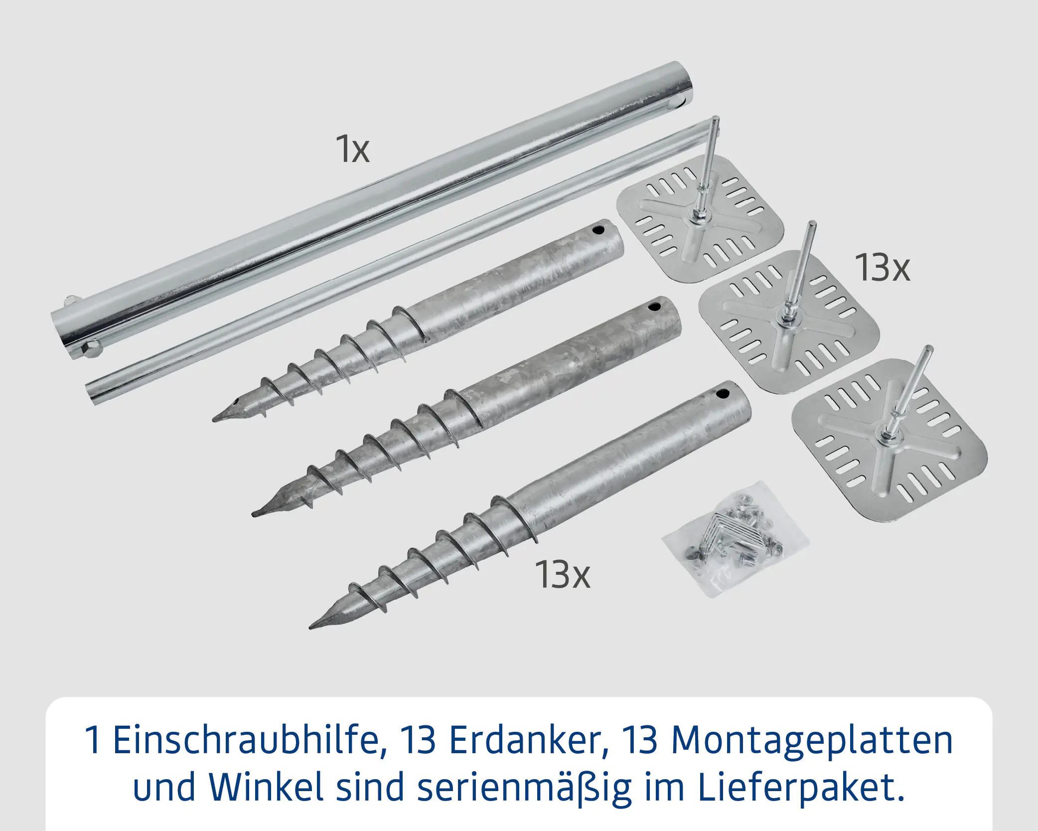 - Lieferumfang: Schraubfundament Set Typ 3 , Befestigungsmaterial