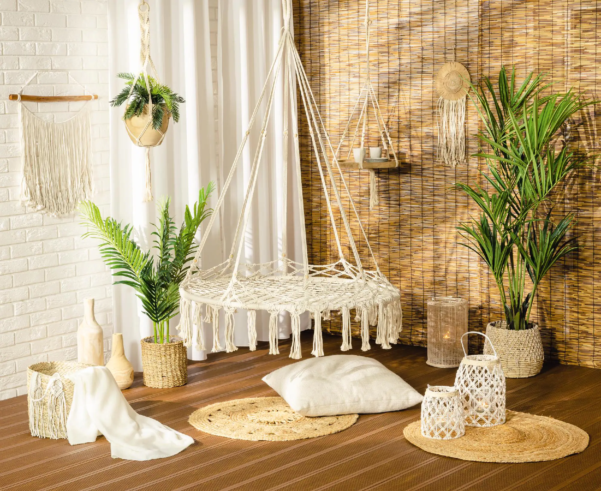 Genießen Sie ihre freie Zeit im komfortablen Hängesessel im Boho Style. Verwandeln Sie ihre Wohnung, Terrasse oder Garten in eine Wohlfühloase. Ein dekorativer Vorhang sorgt für ein noch größeres Wohlgefühl. Die Belastbarkeit beträgt bis 120 kg.