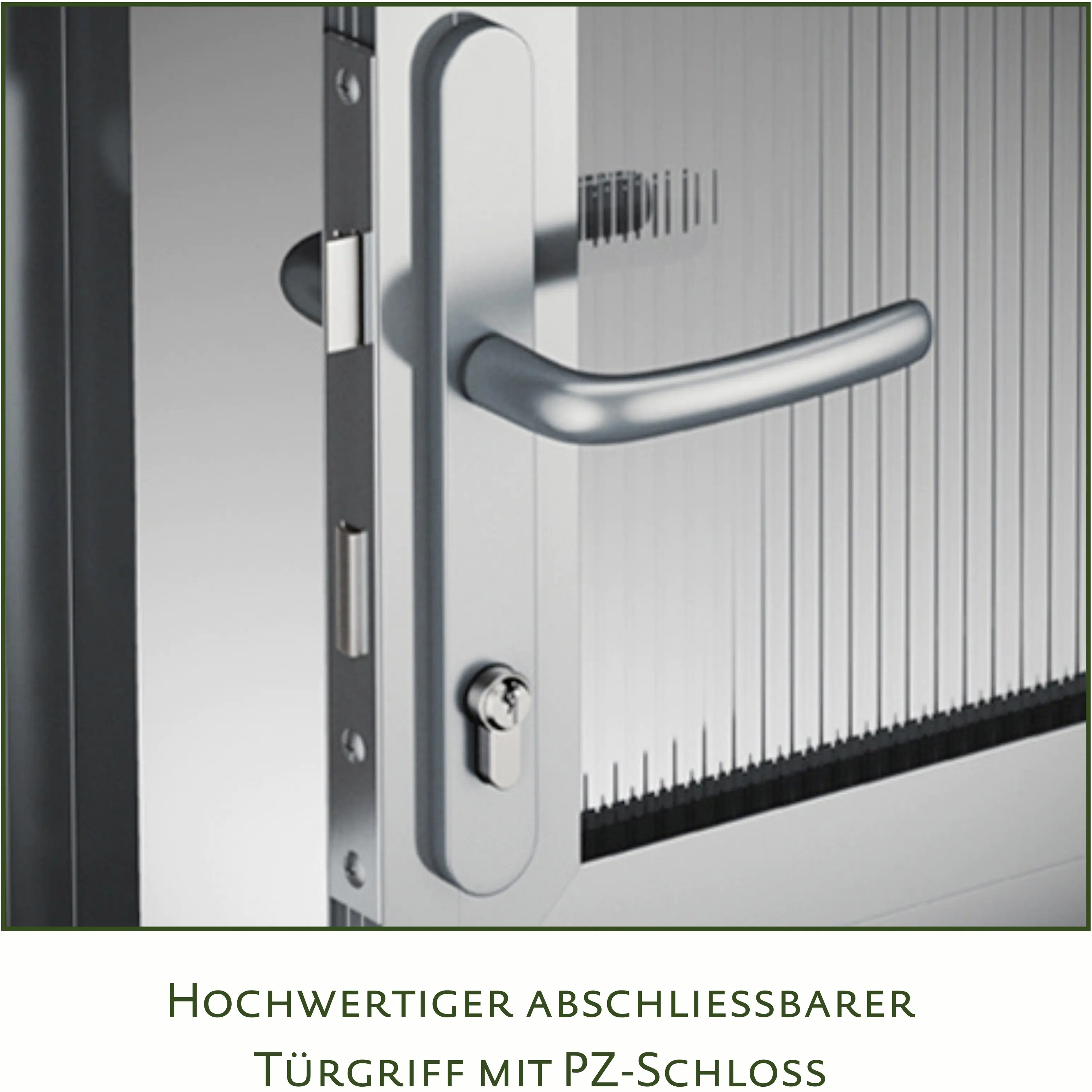 Ein weiterer Vorteil der Hohlkammerplatten ist der hohe Isolierwert, durch den die nützliche Wärme länger im Gewächshaus gespeichert wird. Durch die Stehwandhöhe von 1,49 m und einer großzügigen Firsthöhe von 2,15 m ist jede Menge Raum für Sie und Ihre Pflanzen vorhanden. So können auch Tomaten und Gurken problemlos in die Höhe wachsen und sich vollends entfalten. Neben der geteilten Drehtür und dem Rückwandfenster mit Handaufsteller verfügt das Gewächshaus Rose über ein Dachfenster mit automatischem Fensterheber. Damit wird eine optimale Be- und Entlüftung gewährleistet. Um zu sichern was Ihnen lieb ist, ist im Standard-Lieferumfang eine hochwertige, abschließbare Hoppe-Drückergarnitur enthalten. Das Design der einzigartigen Tür wird durch die leichtgängigen, innenliegenden Türscharniere abgerundet. Mit dem Standardlieferumfang erhalten Sie zusätzlich eine beidseitige Regenrinne mit Fallrohren (Länge: 1,40 m). Alle wichtigen Profile (First-, Rinnen- und Bodenprofile) sind in einem Stück ausgeführt und sorgen für extra hohe Stabilität. Potenzielle Leckagen werden somit ebenfalls vermieden.