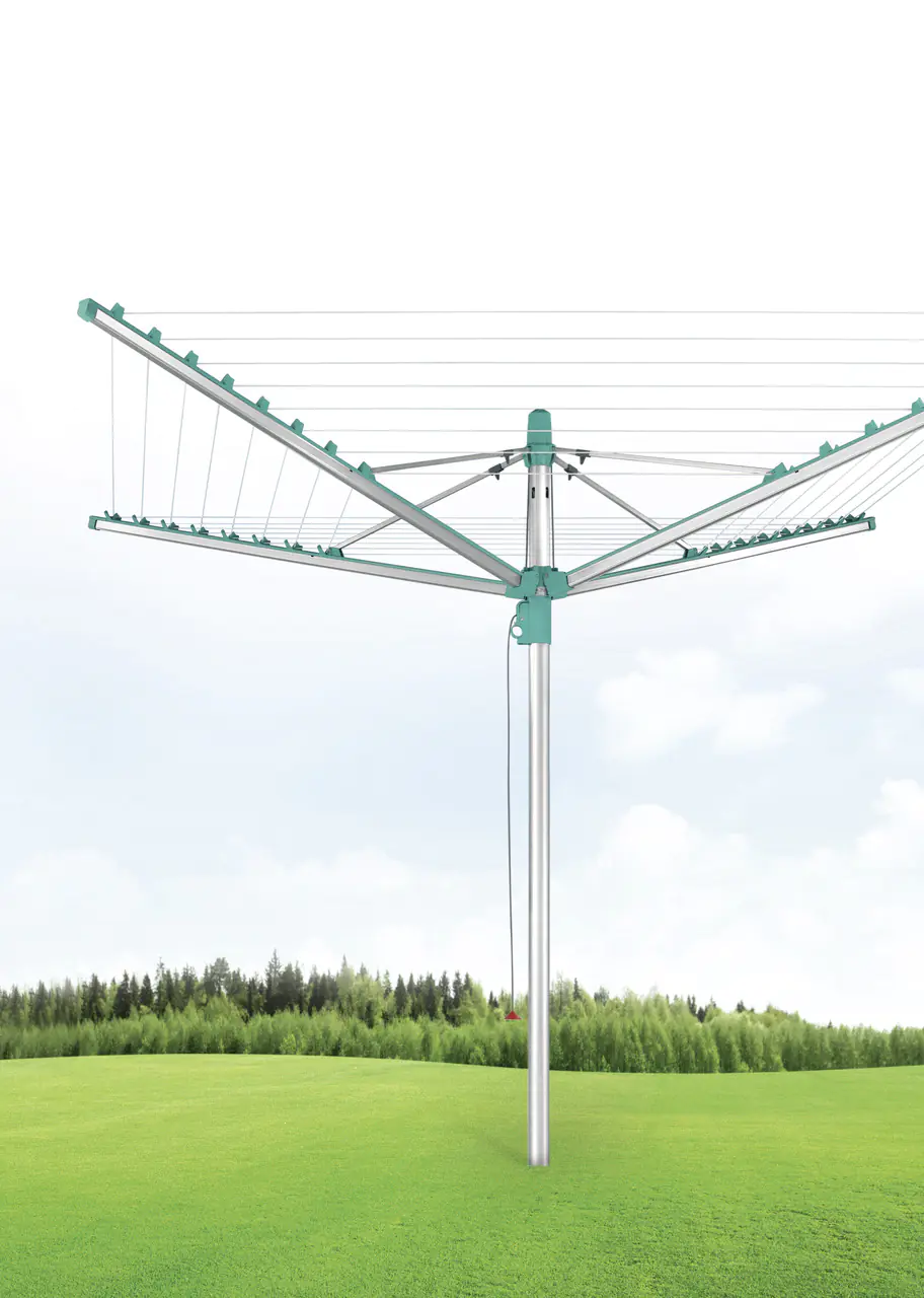 Die Linomatic 500 Easy bietet die millionenfach bewährte Leifheit Leinenautomatik in leichtem, offenem Design. Wie bei allen Linomatic Wäscheschirmen liegen die Leinen im geschlossenen Zustand schmutzgeschützt in den Tragarmen. Saubere Leinen - saubere Wäsche! Für leichtes Öffnen sorgt das Easy-Lift-System. Einfach an der Aufzugsleine ziehen und schon spannen sich die Leinen auf. Beim Schließen der Wäschespinne werden sie automatisch wieder eingezogen. Auf Grund kleiner Rasteinheiten bleiben die Leinen auch nach jahrelangem Gebrauch noch straff gespannt. Mit 50 m Leinenlänge bietet die Linomatic 500 Easy Platz für bis zu fünf Waschmaschinenfüllungen - auch große Wäschestücke wie Betttücher, Tischdecken und Badehandtücher. Alle eingesetzten Materialien sind witterungs- und UV-beständig. Inklusive Bodenhülse zum Einbetonieren. Made in Germany.