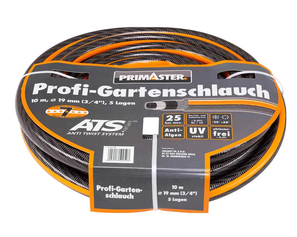 Der Primaster Profi-Gartenschlauch mit einem Durchmesser von 19,05 mm (3/4") bietet nicht nur eine optimale Wasserzufuhr für Ihren Garten, sondern auch eine Vielzahl von zusätzlichen Vorteilen. Das ATS Variant-Design sorgt für eine knotenfreie Handhabung, was die Nutzung und Lagerung besonders bequem macht.