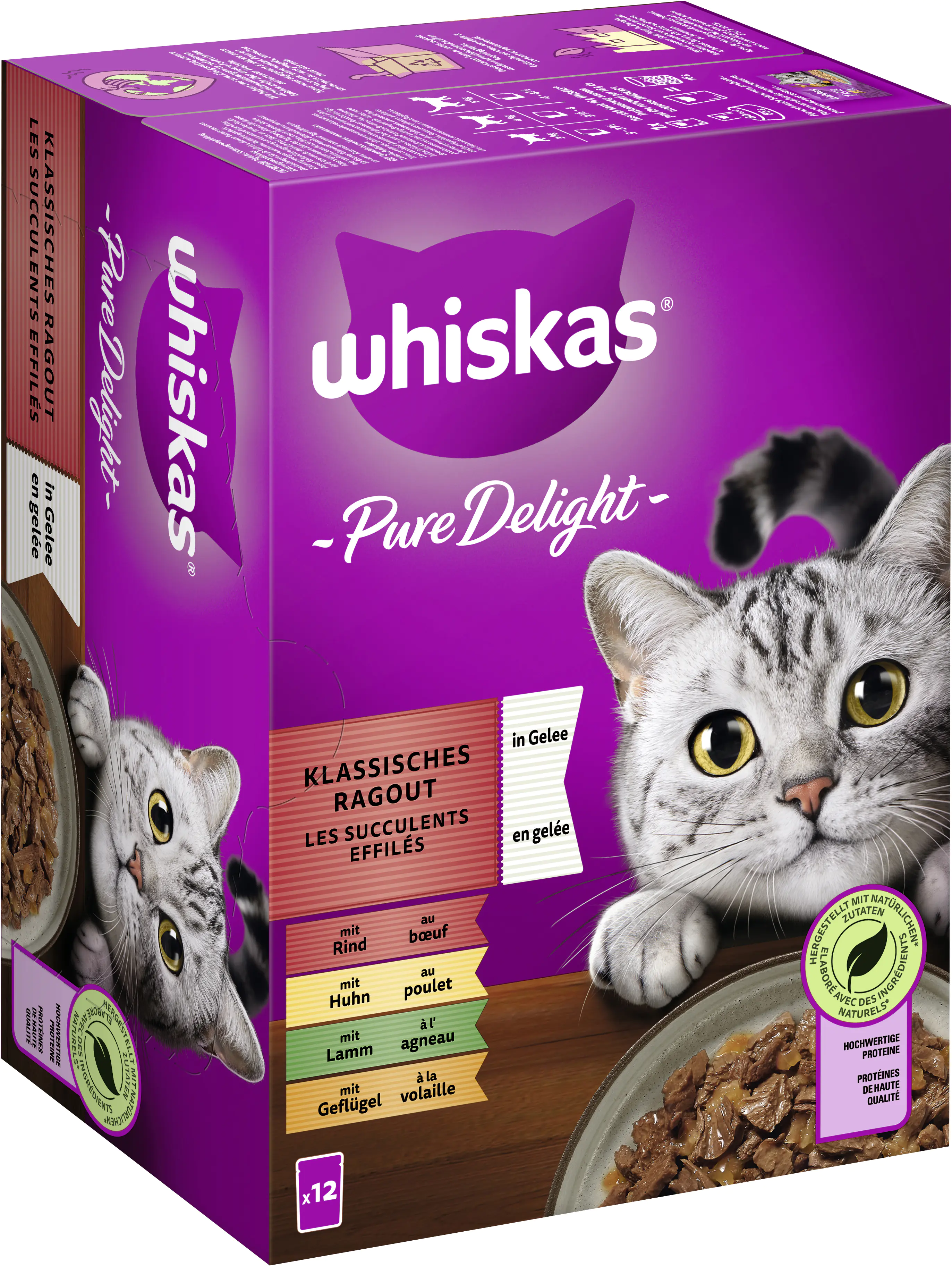 Whiskas Multipack Pure Delight Klassisches Ragout Katzenfutter 12 x 85 g
