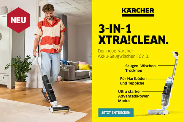 *Beim Kauf von ausgewählten Kärcher Hochdruckreinigern der Druckklassen K 4 – K 7 oder Mitteldruckreiniger KHB im Aktionszeitraum vom 01.03. bis 11.05.2025 im teilnehmenden Handel in Deutschland oder bei der Alfred Kärcher Vertriebs-GmbH direkt, erhalten Sie nach Online-Registrierung unter www.karcher.de/hd-aktion je nach gekaufter Gerätevariante einen Cashback von bis zu 70 €. Die Online-Registrierung muss bis zum 08.06.2025 (Ausschlussfrist) erfolgen. Für die Registrierung ist die Angabe der Bestellnummer des Neugeräts, Ihre Daten einschließlich Ihrer gültigen Bankverbindung sowie der Upload des Kaufbelegs erforderlich. Ein Anspruch auf Auszahlung in Bar besteht nicht. Eine Kombination mit weiteren Rabattaktionen von Kärcher ist ausgeschlossen. Bei Rückgabe des Geräts besteht kein Anspruch auf den Cashback. Pro Haushalt können max. zwei Aktionsgeräte für die Aktion registriert werden. Die Aktion ist ausschließlich für Endverbraucher (§ 13 BGB) zugelassen. Vollständige Infos, eine Auflistung aller Aktionsgeräte und Aktionsbedingungen unter: www.karcher.de/hd-aktion.